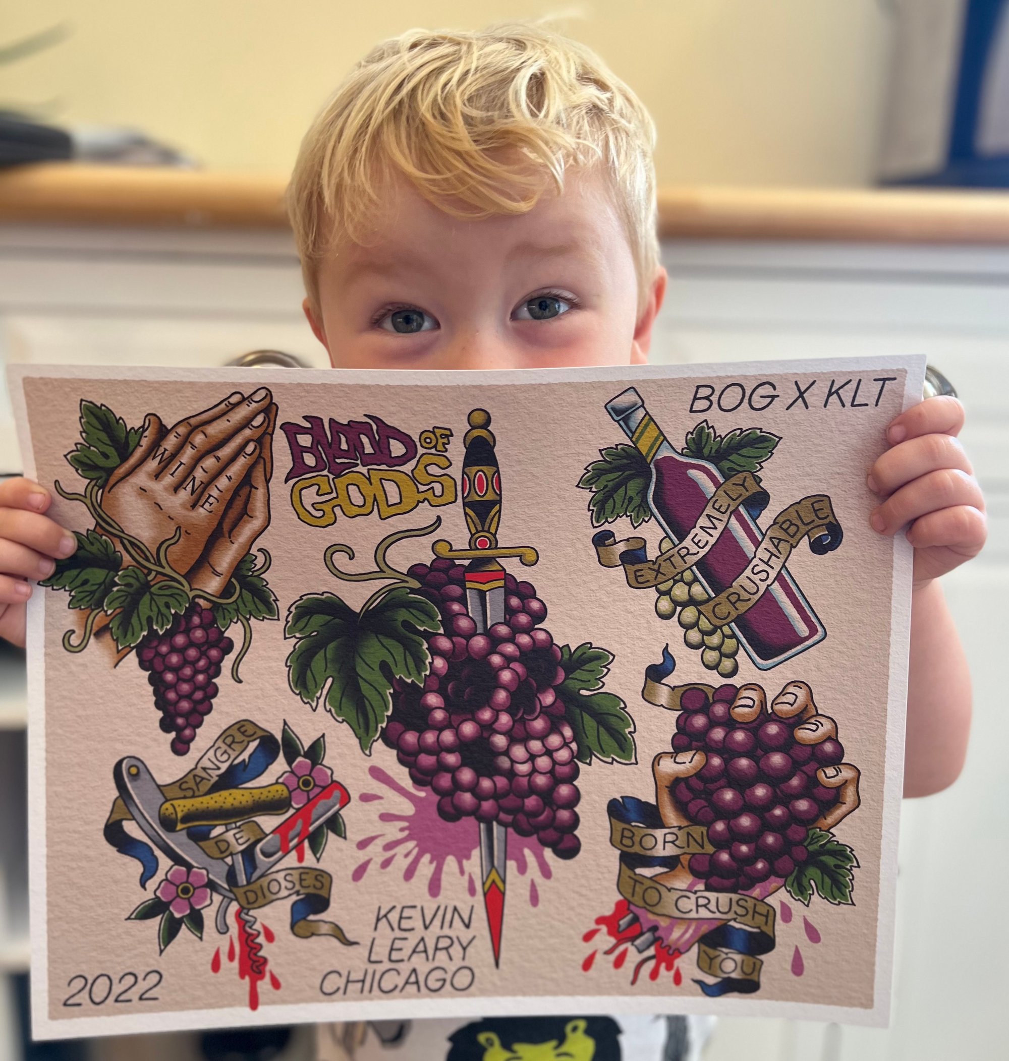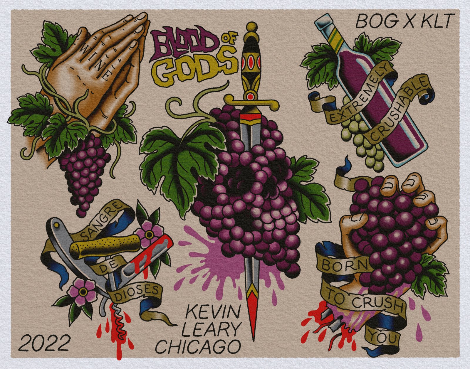Blood Of Gods X Kevin Leary collaborative tattoo flash sheet.