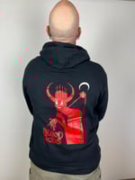 Slake Thy Thirst for a brutalicious heavy metal + wine hoodie! Blood Of Gods logo printed on the front left chest and Wine Lich, designed by Morgan Sorensen, on the back (Santa Cruz - Full Zip Hoodie).